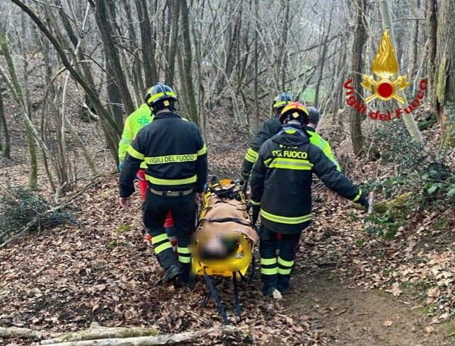 Raggiunto il giovane, i Vigili del Fuoco in collaborazione con i sanitari, lo imbarellavano su una barella in loro dotazione e lo trasportavano lungo il sentiero per circa 300m fino all'ambulanza.
