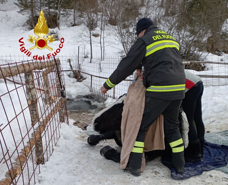 Fortunatamente, una donna che passava da quelle parti ha notato la cavalla in difficoltà e ha allertato Dante Del Bon, che a sua volta ha chiamato i soccorsi. Una squadra dei vigili del fuoco di Agordo è giunta sul posto con un mezzo pesante e ha tirato fuori l'animale, che è stato asciugato e riscaldato fino all'arrivo del veterinario.