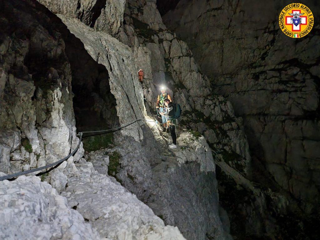 I soccorritori li hanno dotati di imbracatura e legati alla corda, accompagnandoli lungo il sentiero di rientro da Cima di Terrarossa. L'intervento si è concluso alle 3.40 del mattino.