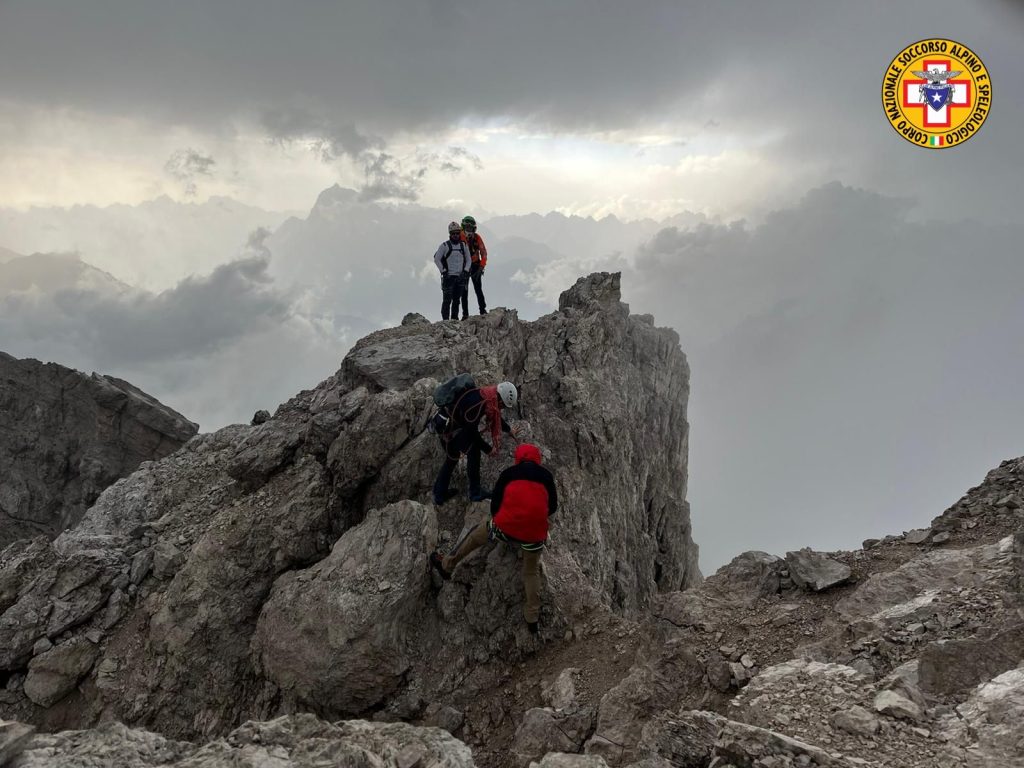 Mentre i due soccorritori si dirigevano verso il versante ovest per intercettare la cordata in difficoltà l'elicottero è andato a riprendere il terzo soccorritore con i materiali: date le condizioni meteorologiche poteva verificarsi l'eventualità di un rientro a valle in autonomia, senza elicottero, fortunatamente non resasi necessaria.