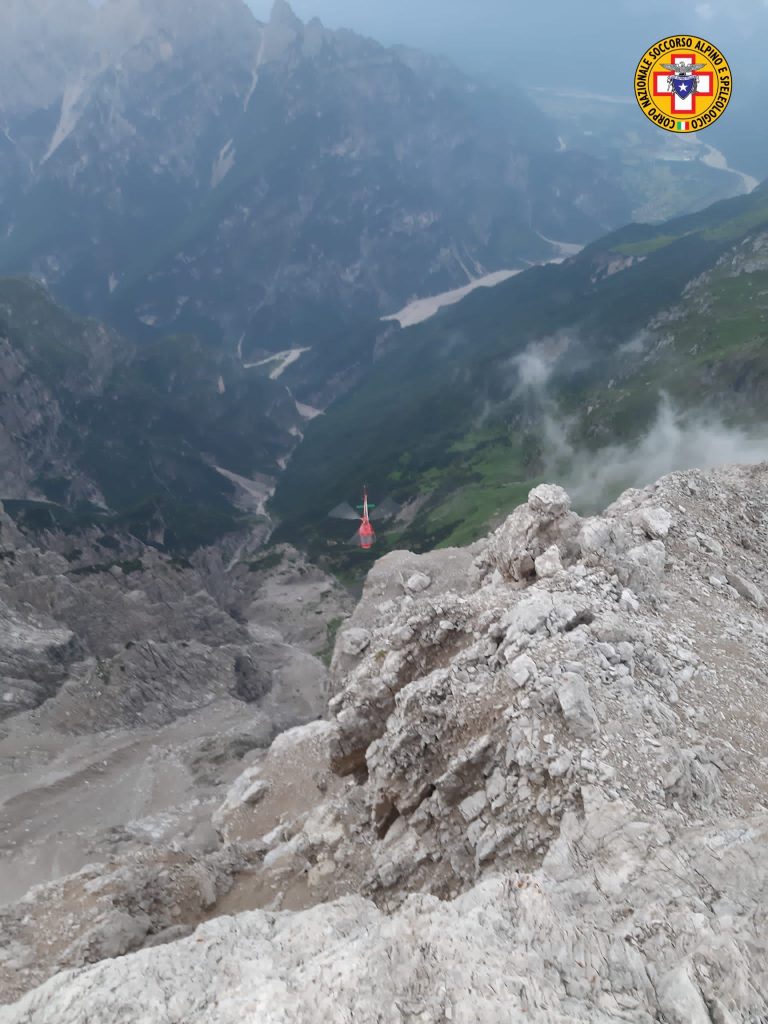 Tre soccorritori della stazione Valcellina del Soccorso alpino sono stati caricati al campo base di Claut a bordo dell'elicottero della Protezione Civile e portati in quota. Non è stato possibile effettuare subito lo sbarco a causa delle forti raffiche di vento e quindi si è prima sbarcato uno dei tecnici in forcella con un po di materiale e poi il pilota ha condotto sulla cima gli altri due e li ha sbarcati approfittando di un momentaneo diradamento delle nuvole.
