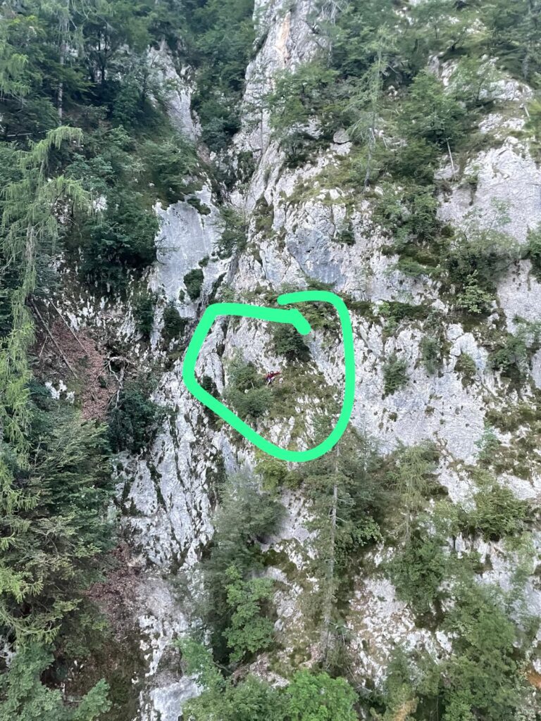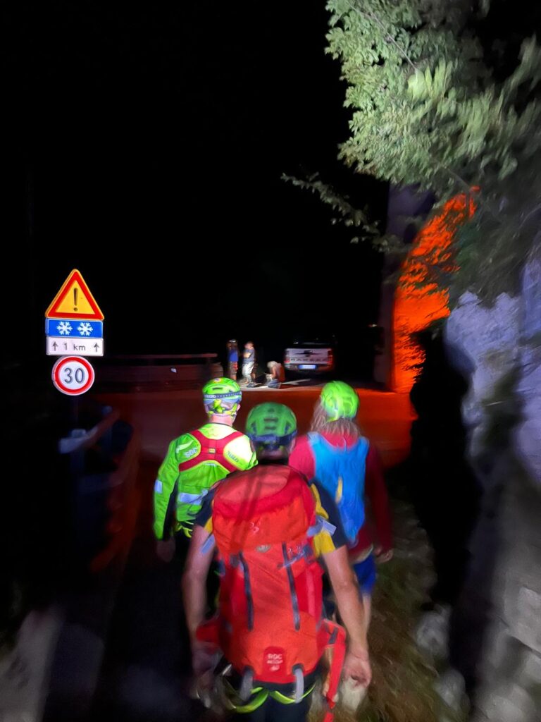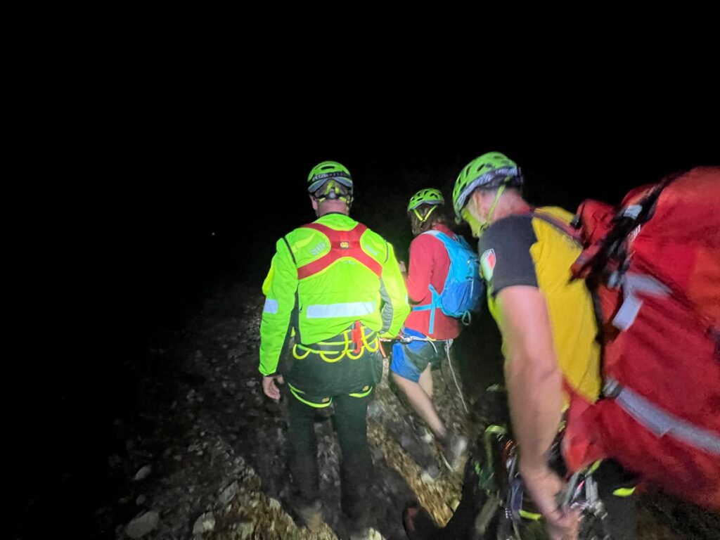 L'elicottero, non dotato di verricello, non poteva sbarcare i tecnici in una posizione più elevata. Inoltre, il tempo a disposizione era limitato. Poco dopo le 20, i soccorritori sono stati lasciati alla base della parete e hanno dovuto arrampicarsi su roccette di secondo grado per raggiungere il disperso. Tre tecnici hanno affrontato un dislivello di circa cento metri per raggiungere l'uomo.