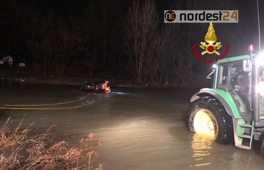 L’uomo trascinato in mezzo al corso d’acqua è riuscito a salire sulla capotta della Nissan Terrano riuscendo a farsi notare e dare l’allarme.