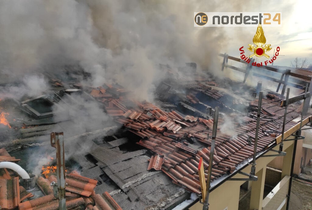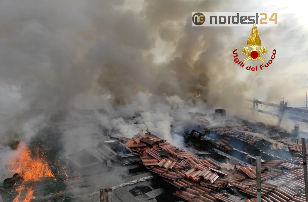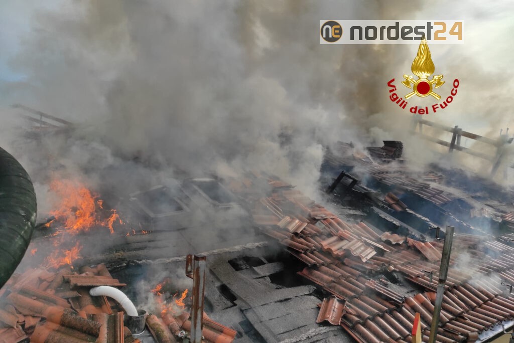 Le fiamme hanno interessato l’intera copertura, dove erano in corso dei lavori di manutenzione per la posa in opera della guaina isolante. Le operazioni di completo spegnimento e bonifica sono in fase di ultimazione.