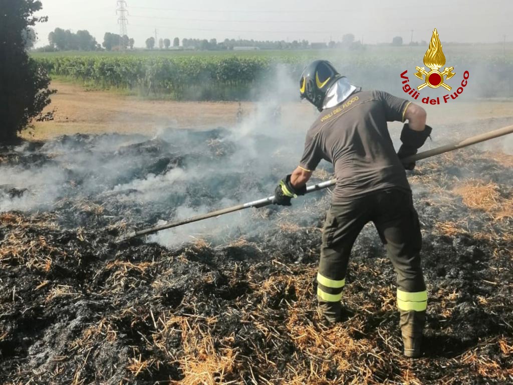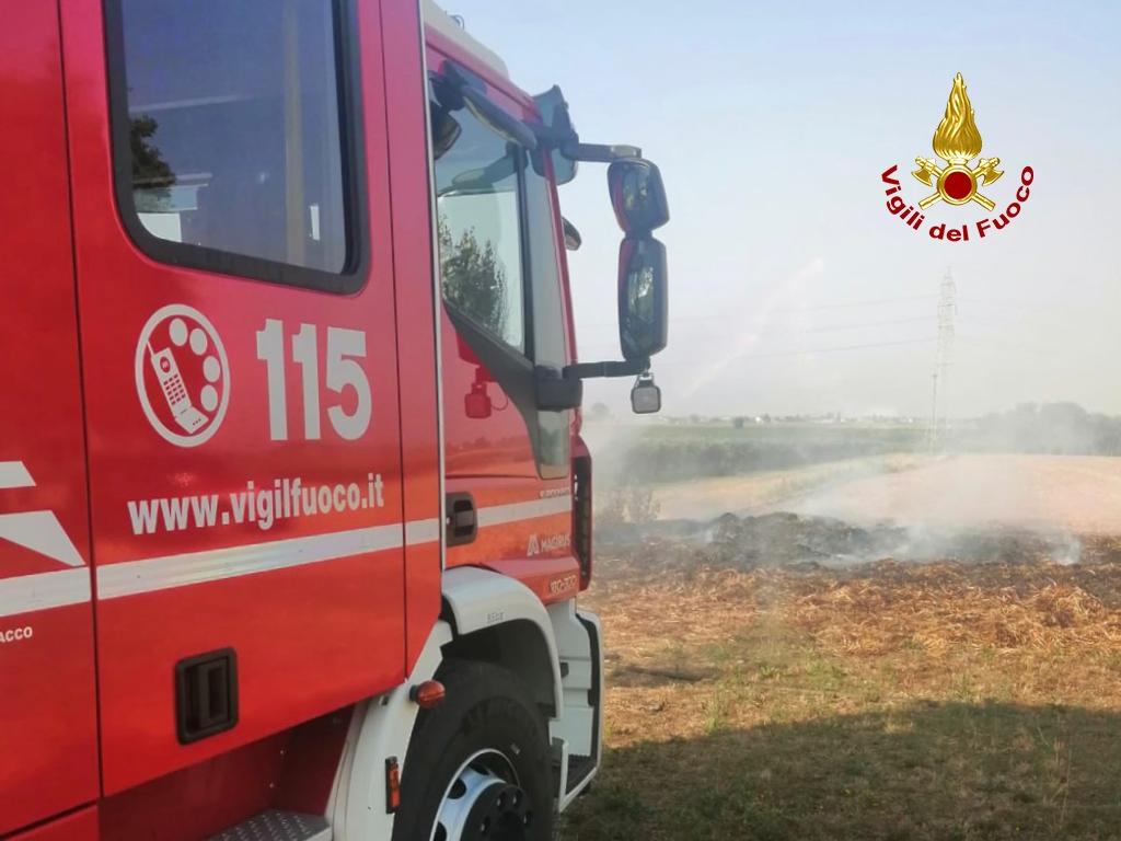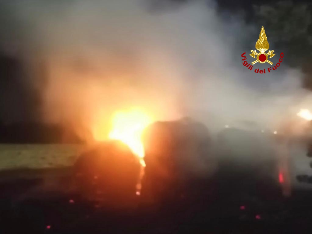 Bruciano quindici rotoballe nel campo agricolo: intervento dei pompieri