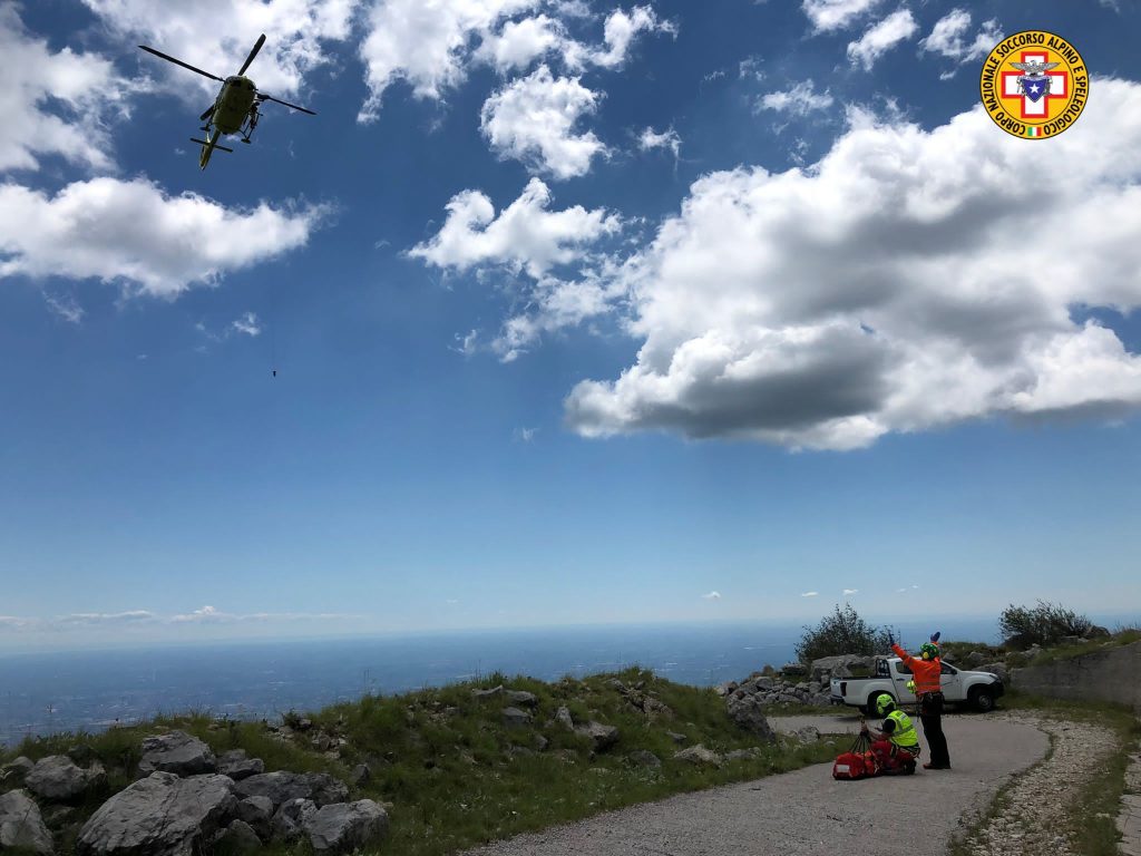 L'incidente è avvenuto lungo la strada che collega Baracca del Sauc a casera Campo ed ha procurato al ciclista un trauma cranico - facciale e ad una spalla.