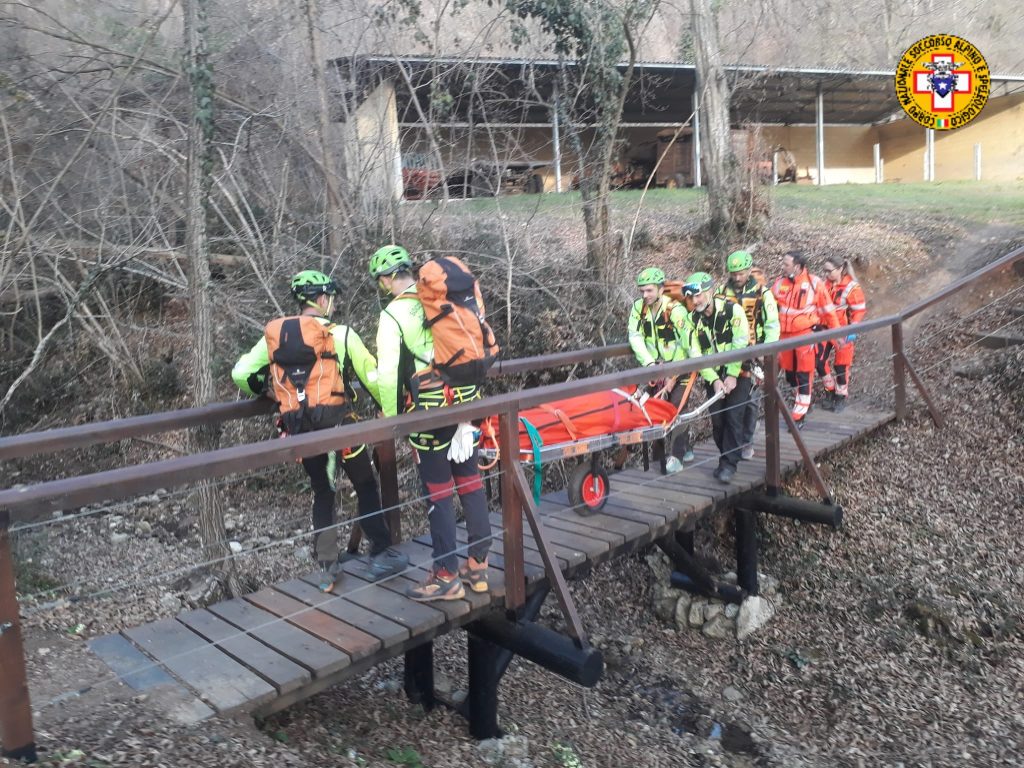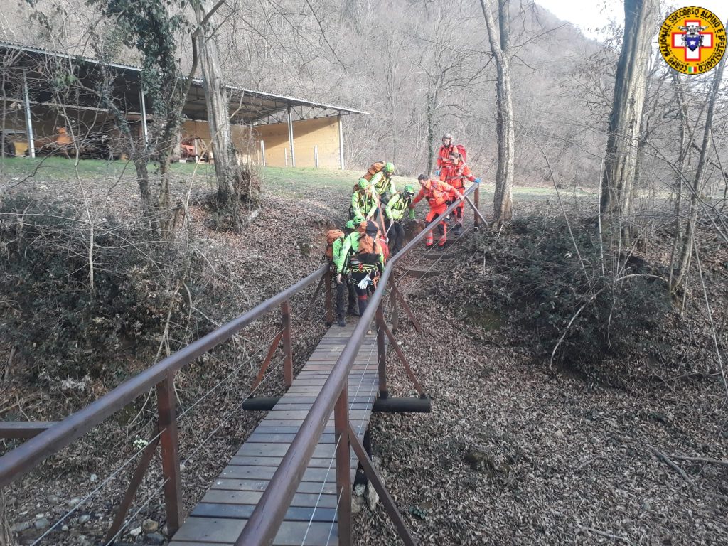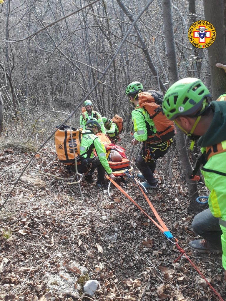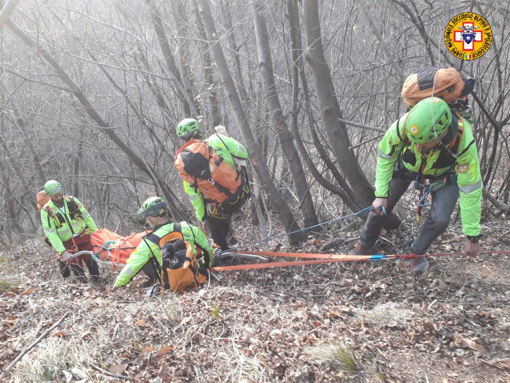 La barella è stata calata nel bosco a spalla dai soccorritori e la discesa fino alla strada è stata coadiuvata con l'impiego di corde di sicurezza. Il ferito è stato consegnato all'ambulanza. L'intervento si è svolto tra le 15.30 e le 17.30 circa.