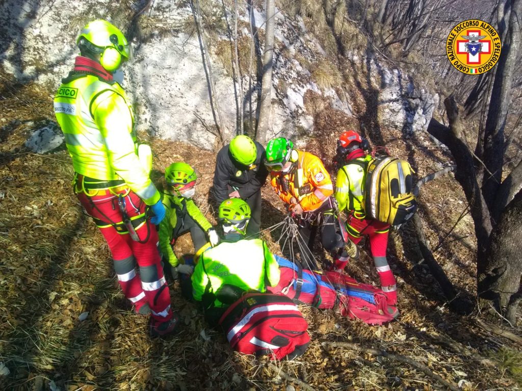 L'uomo ha subito un trauma cranico con una ferita e una sospetta frattura ad un arto inferiore. Cinque soccorritori sono stati trasportati in quota a mille metri con l'elicottero della Protezione Civile grazie alle precise indicazioni della figlia del ferito nella prima rotazione è stata imbarcata anche una infermiera professionale del Soccorso alpino che ha prestato le prime cure al genitore della donna.