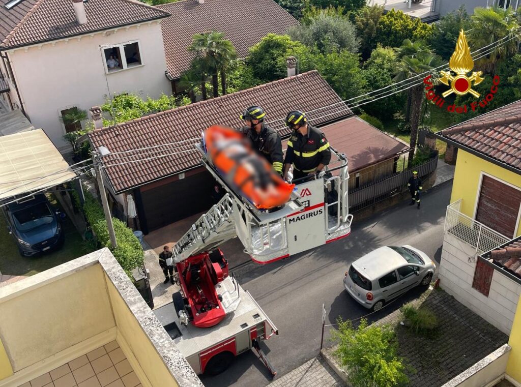 La donna con alcune fratture per la caduta, dopo essere stata immobilizzata dal personale sanitario è stata caricata sulla barella dell’autoscala e portata a terra dove è stata trasferita in ambulanza in ospedale.