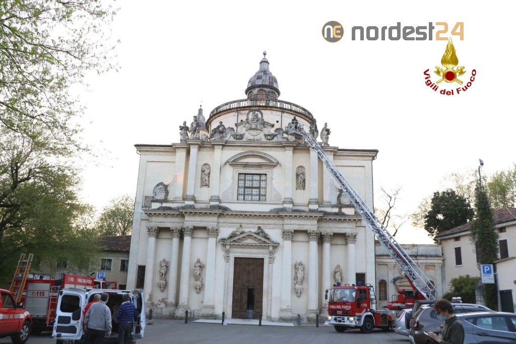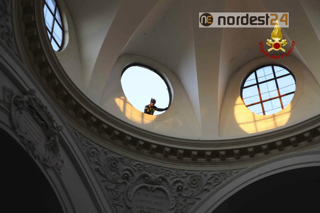 Nel tardo pomeriggio i vigili del fuoco sono intervenuti presso la Chiesa di Santa Maria in Araceli a Vicenza per la caduta di un vetro di uno degli occhioni della cupola precipitato e frantumatosi nel centro della navata.