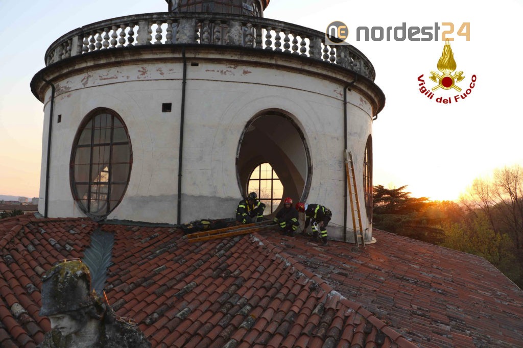 Nel tardo pomeriggio i vigili del fuoco sono intervenuti presso la Chiesa di Santa Maria in Araceli a Vicenza per la caduta di un vetro di uno degli occhioni della cupola precipitato e frantumatosi ne...