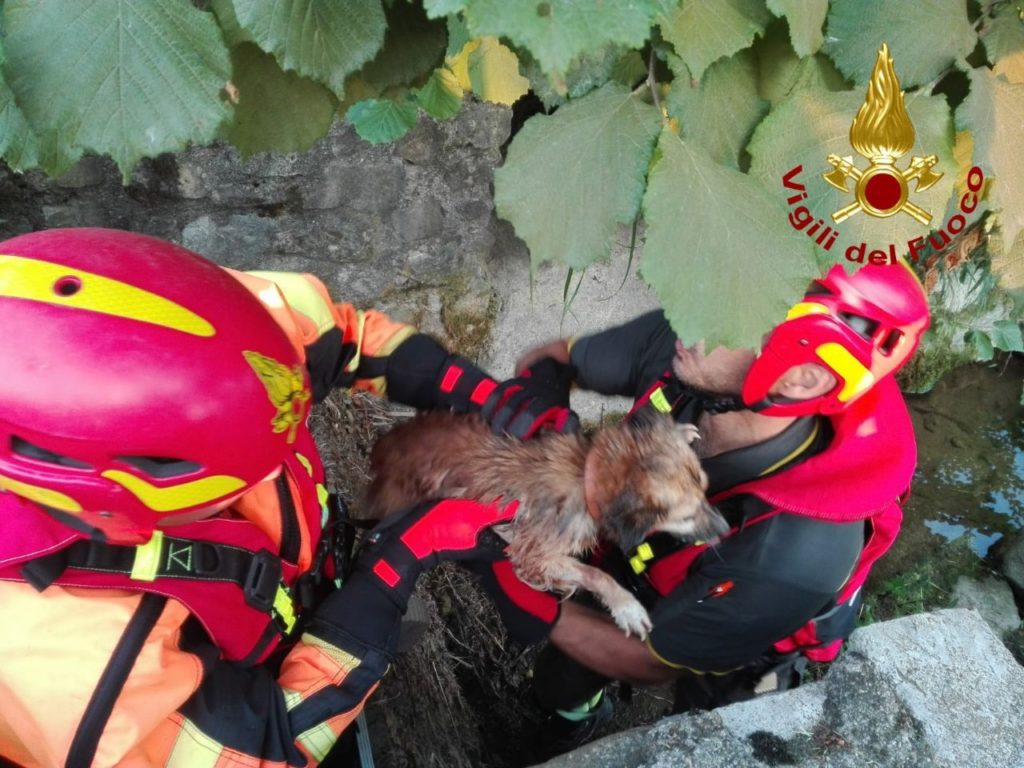 La prima partenza del Comando Provinciale dei Vigili del Fuoco di Pordenone è intervenuta questa mattina a Caneva in via Lovere per soccorrere un cane finito in un sifone di un fossato.