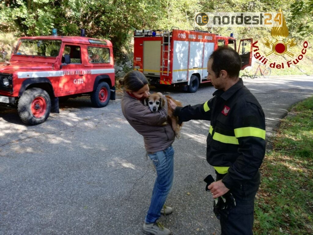 I vigili del fuoco individuata la zona, sono riusciti ad inoltrarsi nel bosco e alla base di una parete di roccia hanno recuperato la cagnolina Sally in buona salute, riconsegnandola poi alle braccia dei proprietari.