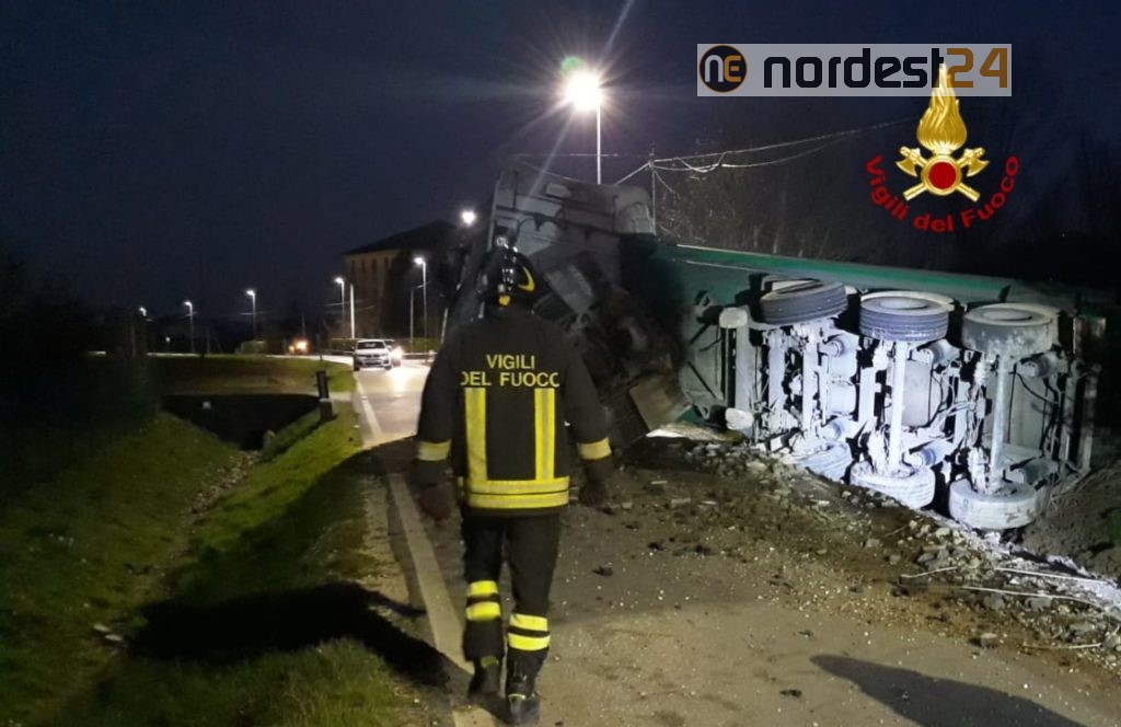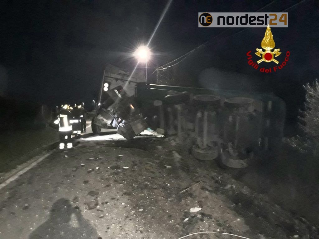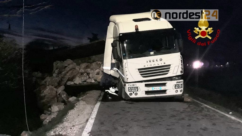 Alle 18 circa di oggi giovedì 20 febbraio 2020, i vigili del fuoco sono intervenuti in via Stona a Bosco di Nanto in provincia di Vicenza per il rovesciamento del semirimorchio di un camion finito rovesciato nel terreno sottostante il ciglio stradale.