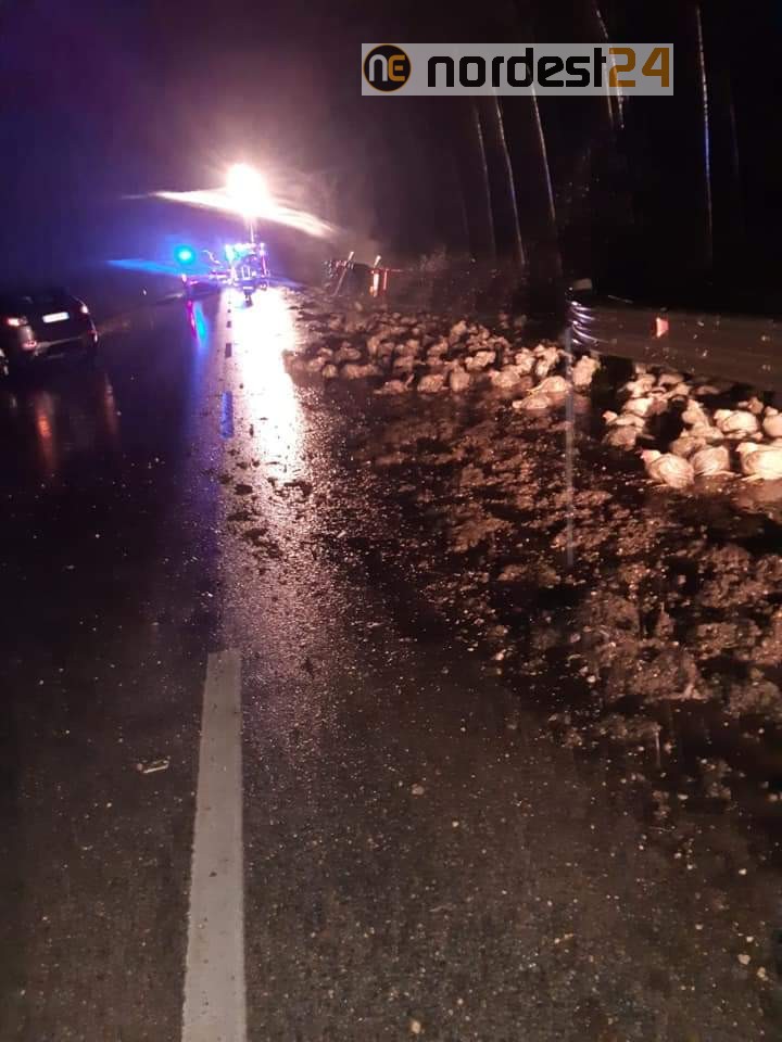 Ieri sera intorno alle 22.00 due squadre della Protezione Civile di Varmo sono intervenute per supporto alle forze dell’ordine per un incidente stradale lungo la SP95 (ferrata), dove un camion che trasportava circa 3000 polli è uscito di strada.