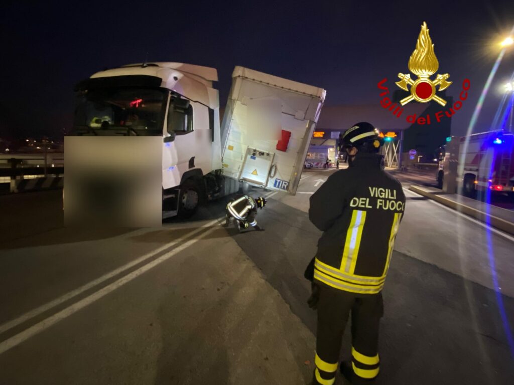 Camion esce dal porto e perde il rimorchio: intervento dei pompieri