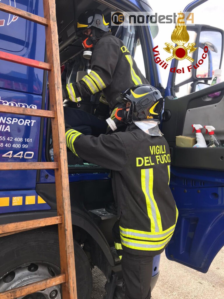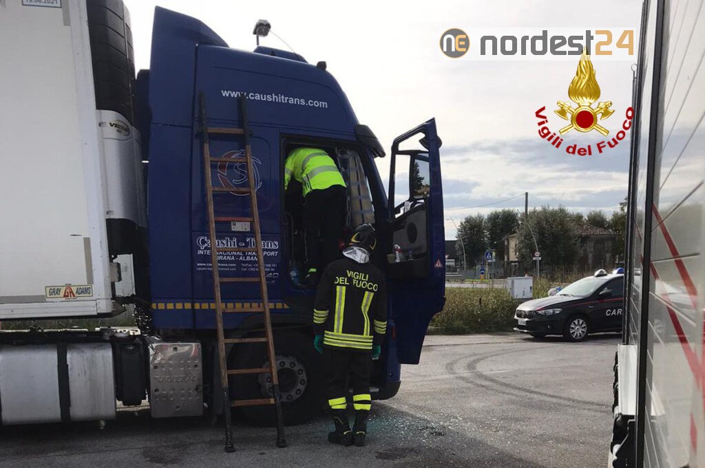 I pompieri arrivati dal distaccamento di Este, hanno aperto la cabina del camion, rinvenendo nel lettino dietro il posto guida l’uomo 45 enne di origine albanese, purtroppo deceduto come constatato dal medico del SUEM. Sul posto i carabinieri. Le operazioni di soccorso dei vigili del fuoco sono terminate dopo circa un’ora.