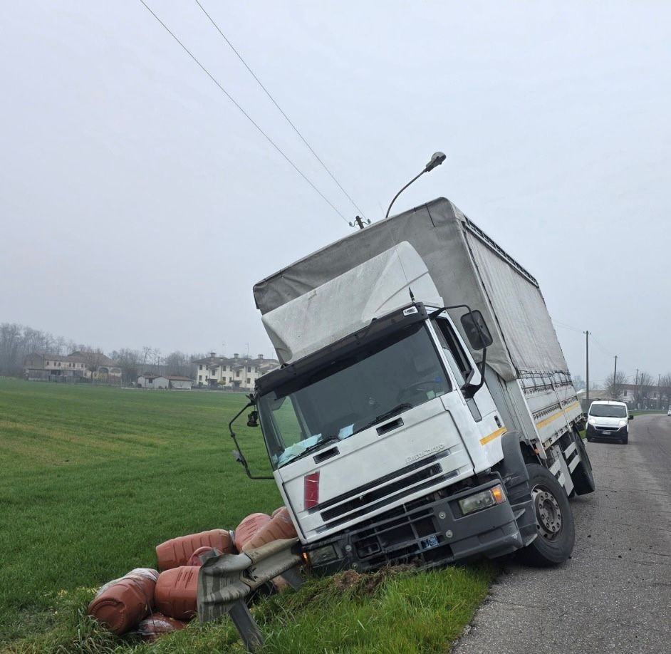 Camion finisce nel fossato in zona rurale. Intervento di Veneto Strade e possibili rallentamenti.