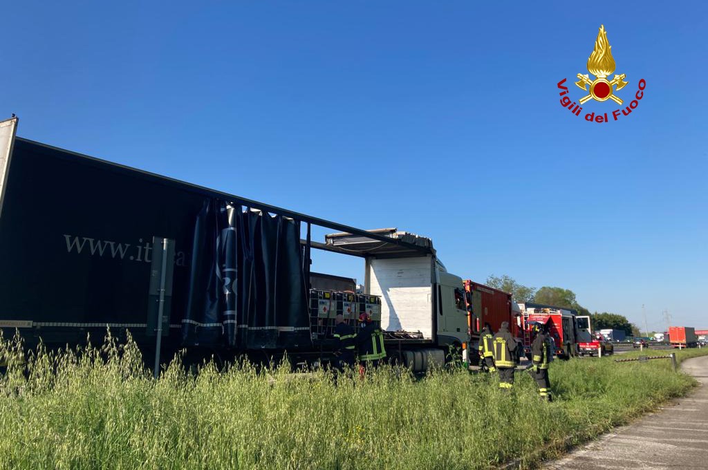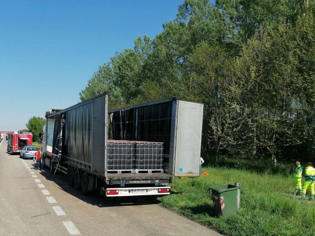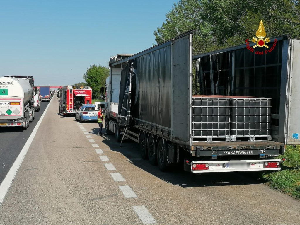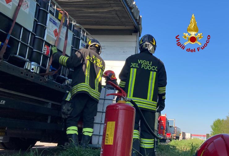 Camion perde resina bicomponente in A4: intervento dei pompieri