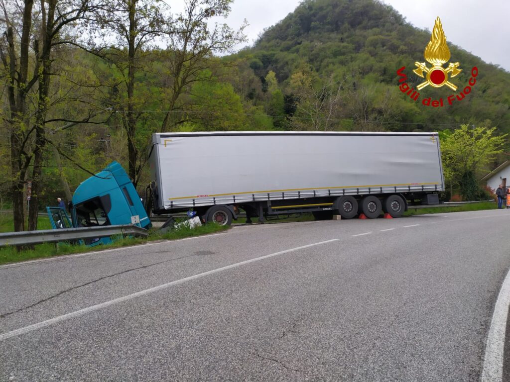 Il trattore danneggiato per la fuoriuscita è stato distaccato dal semirimorchio e sostituito con un’altra motrice. Durante le operazioni di soccorso la strada Priabonese è rimasta interdetta al traffico. Le operazioni di soccorso dei vigili del fuoco sono terminate alle 13:00.