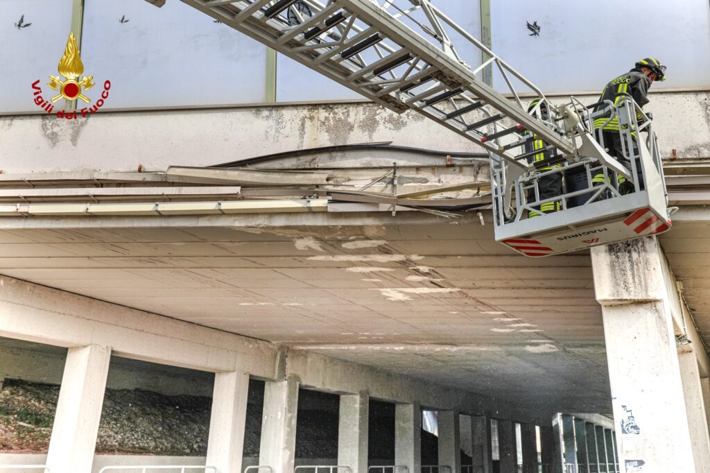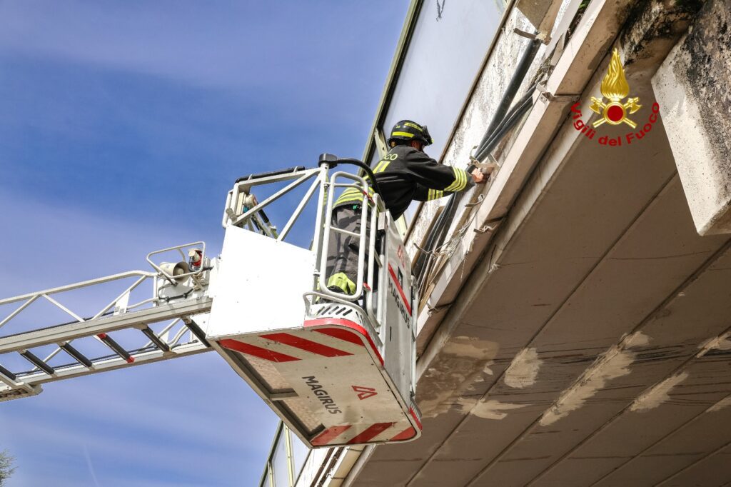 Hanno poi provveduto con l’autoscala alla rimozione della canaletta penzolante lunga oltre 4 metri.