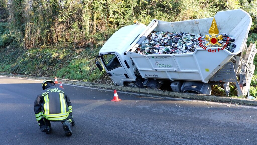 Alle 13:40, di mercoledì, i vigili del fuoco sono intervenuti in Strada Pila ad Arcugnano in provincia di Vicenza per un piccolo camioncino cassonato della raccolta del vetro finito fuoristrada a rischio ribaltamento, dopo la perdita di controllo del mezzo dell’autista rimasto illeso.