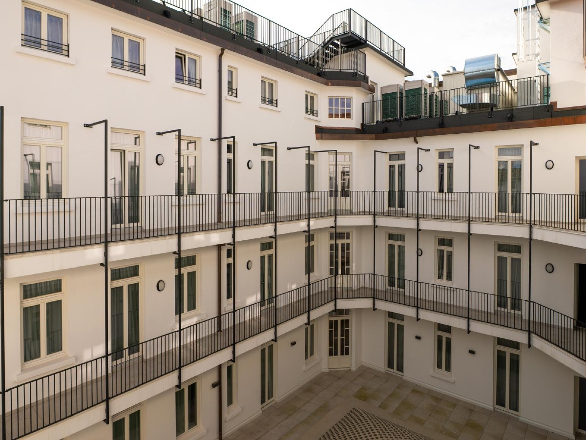 Gli spazi comuni, distribuiti principalmente al piano terra e nelle aree interrate, sono pensati per favorire la vita condivisa e lo studio, con ambienti dedicati alla ristorazione, allo studio individuale e di gruppo e alle attività ricreative, affiancati da servizi come reception e uffici, oltre a una palestra, una sala musica, una zona di co-working, una lavanderia e un cortile esterno attrezzato. L’intervento ha inoltre previsto il completo rifacimento degli impianti, con soluzioni all’avanguardia in termini di efficienza energetica, utilizzo esclusivo di energia elettrica, connettività in fibra ottica, illuminazione LED e sistema di gestione centralizzata BMS per il controllo degli impianti. Il progetto rappresenta un esempio virtuoso di riqualificazione del patrimonio edilizio storico, capace di coniugare tutela, innovazione e nuove esigenze abitative dedicate alla popolazione studentesca.