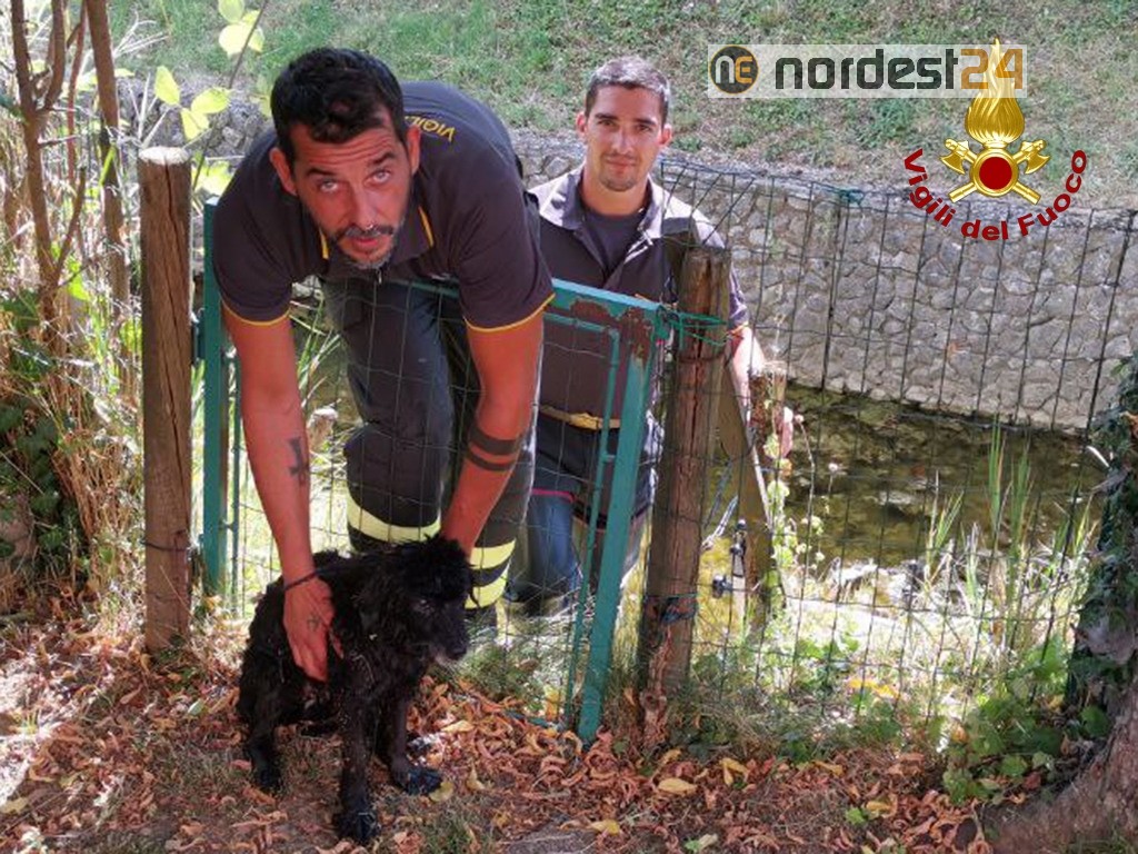 Giunti sul luogo della segnalazione i Vigili del fuoco hanno scorto un cane di piccola taglia che stava tentando, senza riuscirci, di uscire dall’acqua e raggiungere la riva.