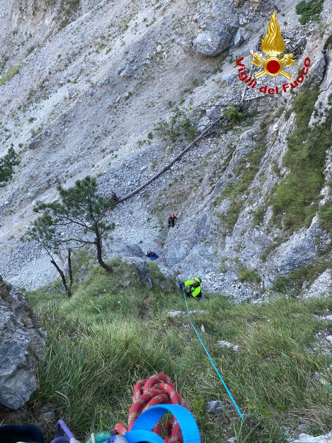 I Vigili del fuoco intervenuti, hanno raggiunto il luogo del soccorso e le componenti SAF (Speleo Alpino Fluviale) presenti nella squadra hanno utilizzato tecniche alpinistiche per raggiungere il cane.