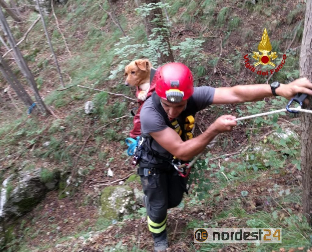 Cane precipita nel dirupo per 15 metri: soccorso dai vigili del fuoco