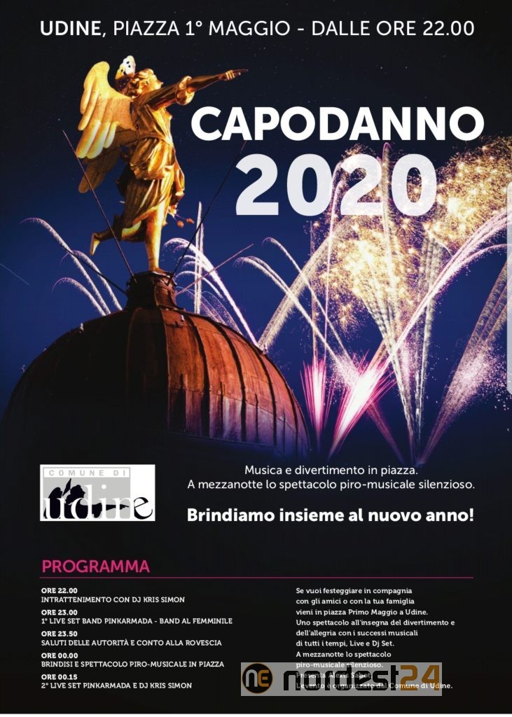 A un quarto d’ora dalla mezzanotte sul palco allestito in Giardin Grande salirà il Sindaco di Udine Pietro Fontanini insieme con l’Assessore Maurizio Franz e agli altri componenti della Giunta per i tradizionali auguri alla città. Un maxi orologio proiettato sullo sfondo del palco scandirà il countdown verso il 2020 fino all’immancabile brindisi di mezzanotte. Come da tradizione il nuovo anno sarà salutato dai fuochi d’artificio silenziosi sparati dalla collina della piazza. Lo spettacolo pirotecnico, offerto dal Comune, sarà curato dalla ditta Pirotecnica San’Antonio, mentre l’organizzazione tecnico-artistica è curata da Pregi srl.
