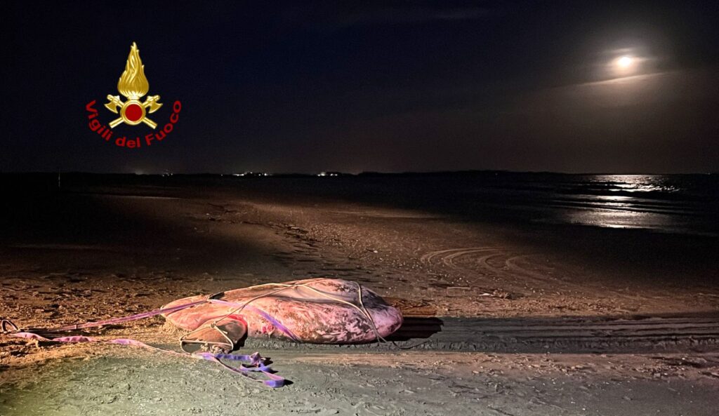 Dopo aver informato diversi enti, i vigili del fuoco hanno provveduto a recuperare la carcassa in accordo con la polizia locale, anche per le previsioni in peggioramento del mare.