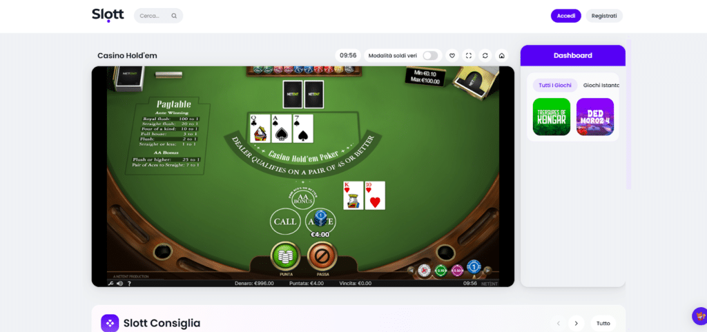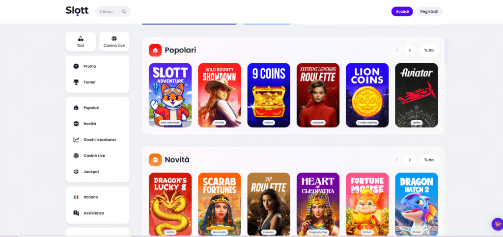 Scopri i Casinò Online in Italia, tutti i giochi e le piattaforme sicure ADM. Prova subito Slott Casino, con slot avvincenti, giochi da tavolo e tanti jackpot!