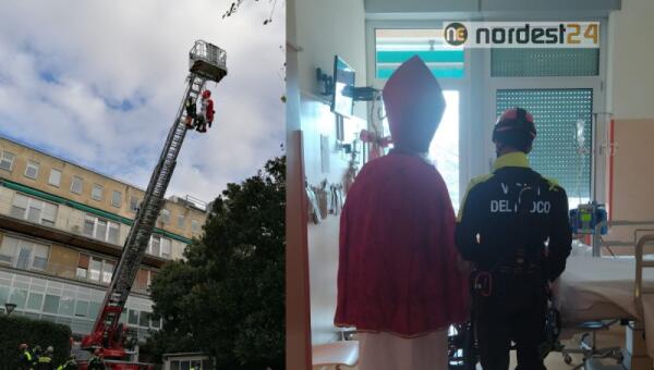 San Nicolò arriva dai bimbi al Burlo con i Vigili del Fuoco