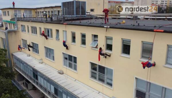Supereroi si calano dal tetto del Burlo: la speciale visita ai piccoli pazienti
