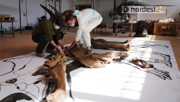 Ultimi preparativi sui resti di Big John prima di iniziare il montaggio dello scheletro