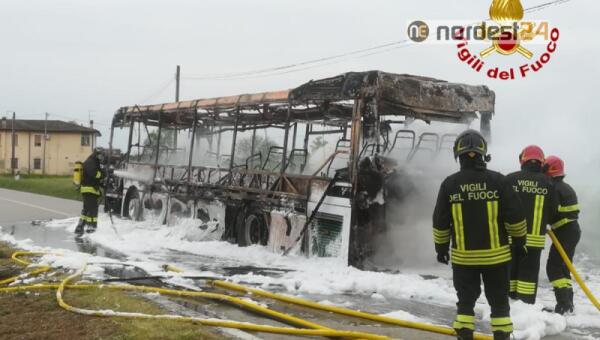 Incendio distrugge un bus del trasporto extraurbano: paura, ma nessun ferito