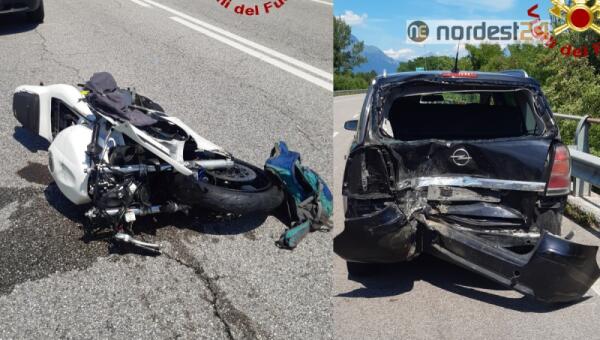 Moto tampona l'auto che la precede e finisce a terra: grave un centauro