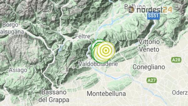 Scosse di terremoto in Veneto, epicentro in provincia di Treviso