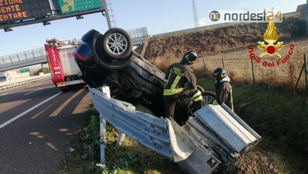 Incidente in A4, auto finisce contro il guardrail e rimane in verticale: un ferito