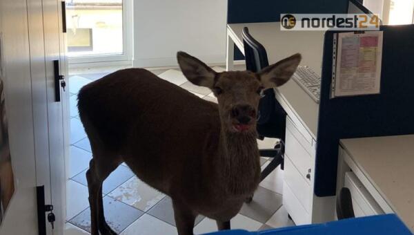 Una cerva finisce negli uffici del Comune di Valdobbiadene