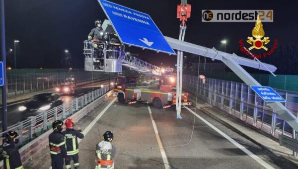 Braccio della gru alzato nel camion: abbattuto un cartello stradale