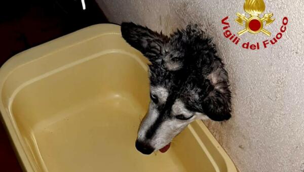 Husky di sei mesi incastrata con la testa in un foro del muro: salvata