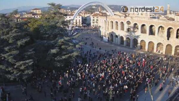 Manifestazione No vax a Verona, circa 700 in Piazza Bra