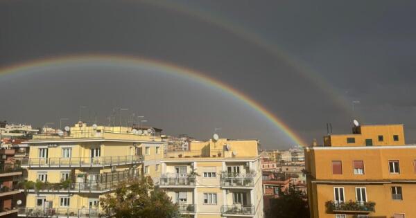 L'arcobaleno saluta i cittadini di Roma con un buongiorno