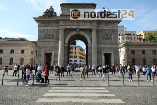 A Milano protesta mascherine tricolore