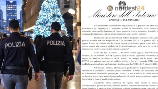 Spostamenti dal 24 dicembre al 6 gennaio: la circolare PDF del Viminale