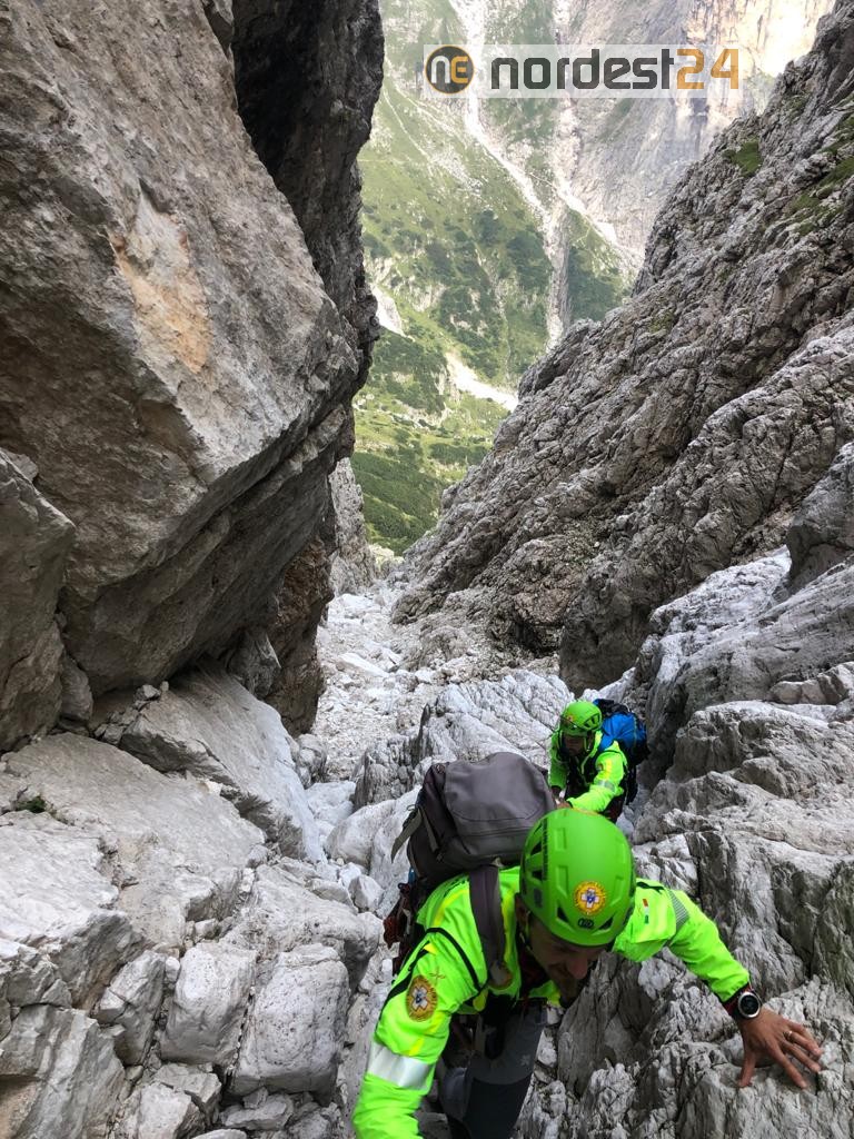 I soccorritori, dopo aver prestato il primo soccorso all'infortunato, hanno attrezzato le corde doppie per calare la cordata fino a una cengia, un centinaio di metri più sotto, per consentire all'elicottero di effettuare il recupero in modo più agevole. Grazie a una finestra di bel tempo, poco prima del crepuscolo, l'elicottero dell'Aiut Alpin Dolomites è riuscito a decollare e a recuperare a bordo la cordata e i soccorritori in hovering.