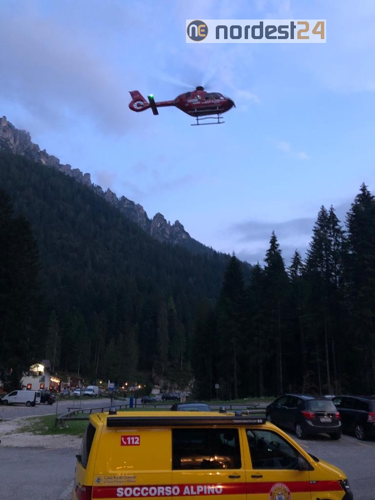 Il coordinatore dell'Area operativa Trentino orientale del Soccorso Alpino e Speleologico ha chiesto l'intervento dell'elicottero che, tuttavia, non ha potuto portare a termine il recupero a causa della fitta nebbia presente in quota. Quattro operatori delle Stazioni Primiero e San Martino di Castrozza sono stati recuperati a bordo del velivolo, elitrasportati fino al limitare della nebbia e verricellati lungo un canale di rocce.