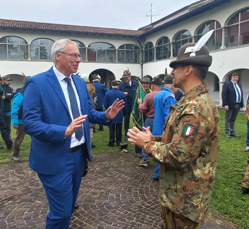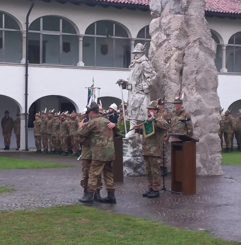 Fedele a un copione consolidato, nonostante la pioggia battente, la cerimonia di avvicendamento ha toccato il suo apice emotivo con l'intervento di Del Favero. Il generale ha esordito in lingua friulana con un affettuoso "mandi a ducj" e ha voluto esprimere la sua gratitudine alla moglie e al padre, "andato avanti 7 anni fa". Successivamente, ha ricevuto un encomio solenne dal comandante delle truppe alpine, il generale Michele Lisi, che ha ricordato i successi conseguiti durante i 14 mesi di comando.